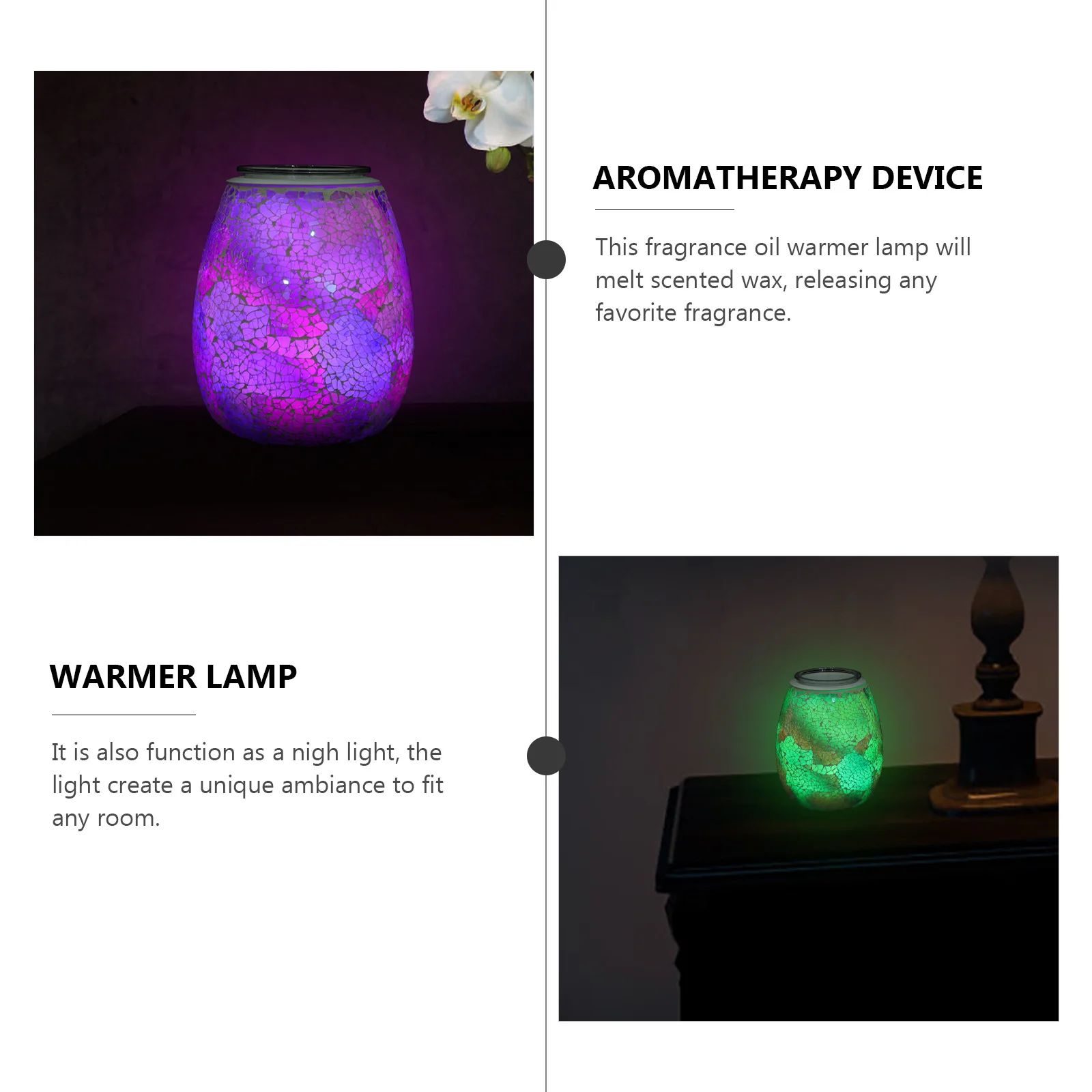 1Pcs Glass Mosaic Aroma Lamp Electric Fragrance Light Color Change Wax Melt Warmer Night Light Aromatherapy for Home Office Yoga