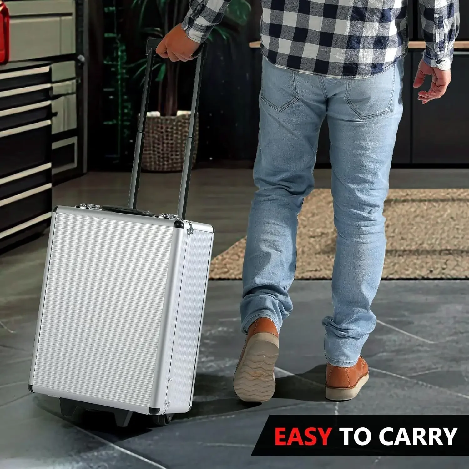 Portable Rolling Tool Box: Mechanics tool set trolley Dimensions: 19.7 x 14.6 x 7.1 inches (50 x 37 x 18 cm).Designed with convenience in mind, the tool set comes in a sturdy aluminum trolley case with wheels for effortless portability. Easily transport your tools from one location to another, whether for professional or home use.