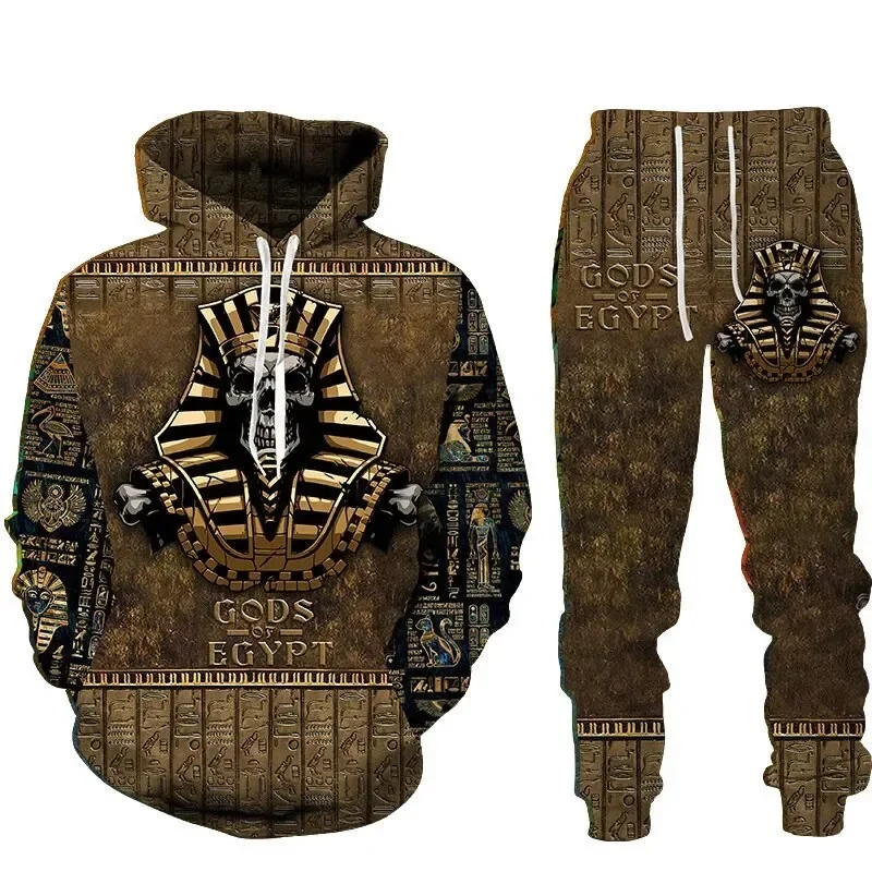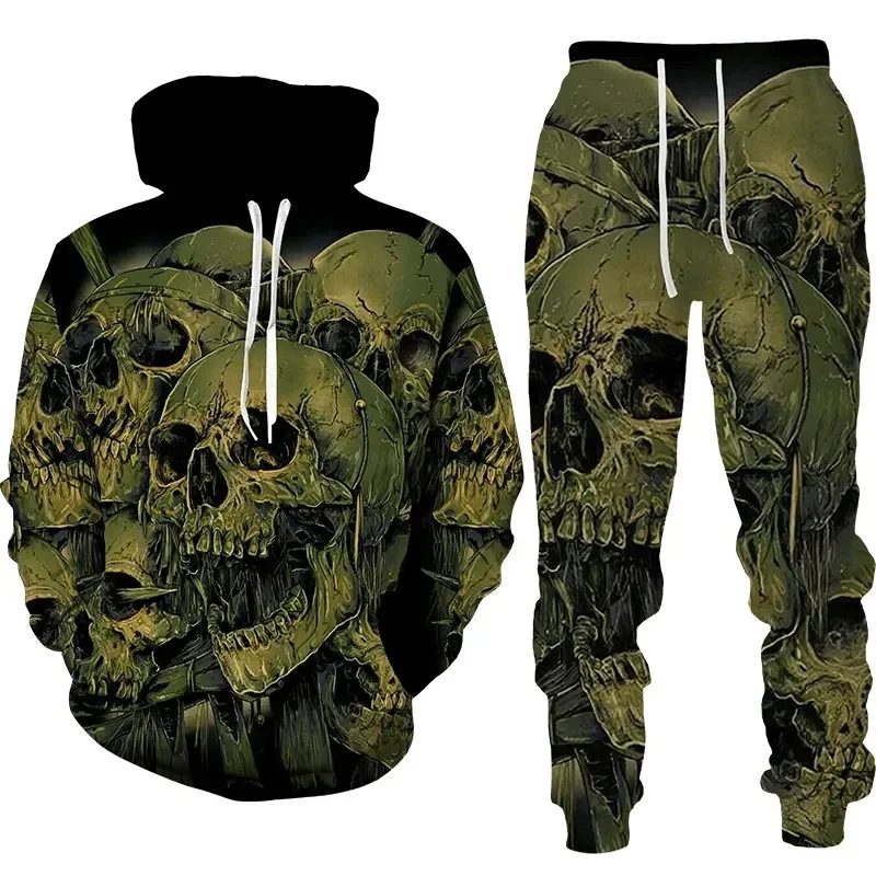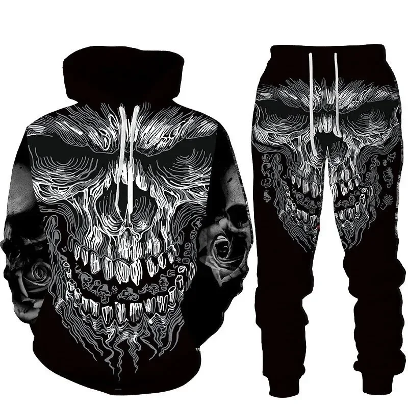Autumn Fashion Gothic Skull 3D Printed Hoodie Suit Men Sweatshirts Sweatpants Ca