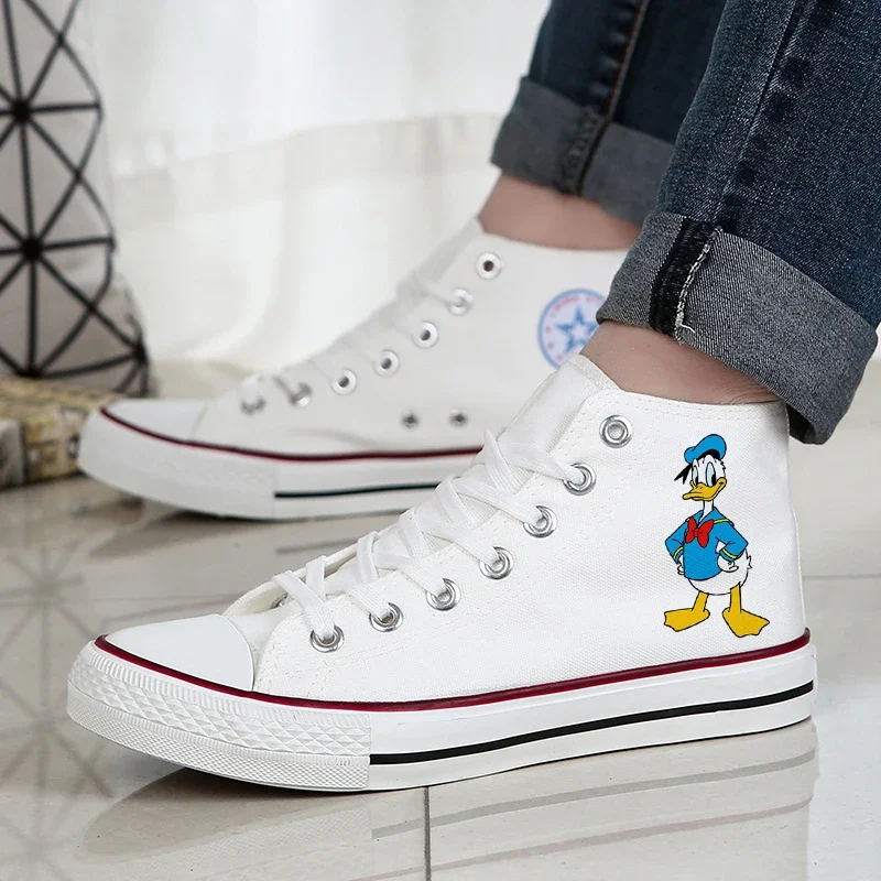 High-Top Vulcanized Canvas Platform Sneakers Custom Donald Duck Daisy Duck Shoes
