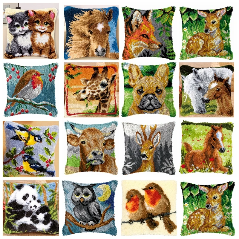 Hot Giraffe Horse Bird Cat Latch Hook Mat Kits DIY Animals Button Pad Package Smyrna klink haak Embroidery Pillow knooppakket