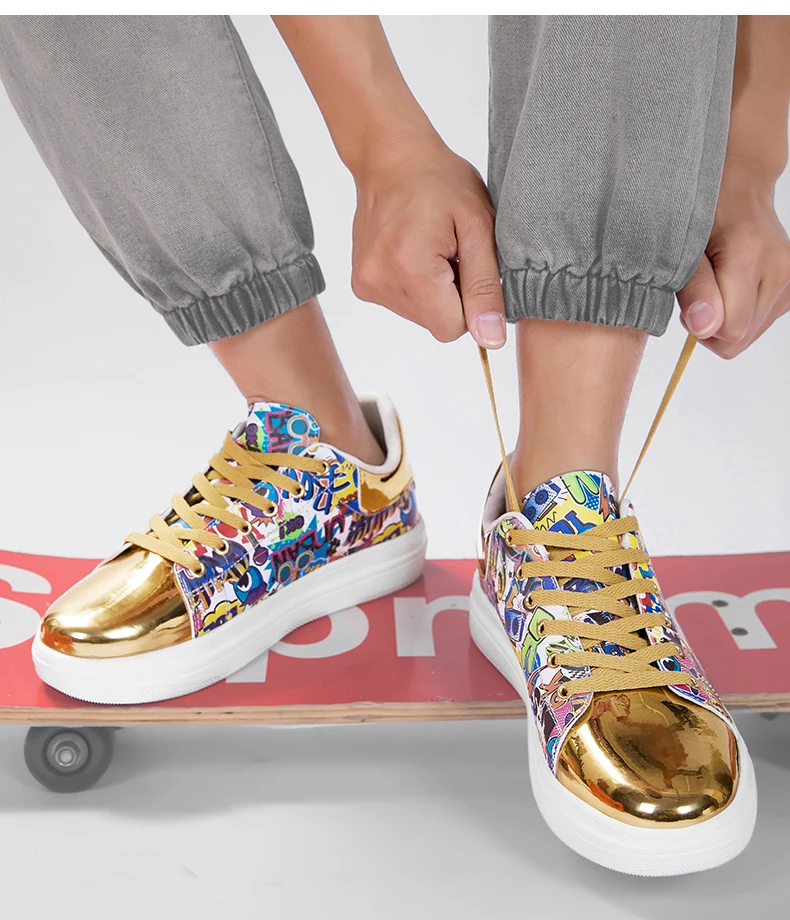 Hot Sale Gold Silver Sneakers Men Hip Hop Casual Unisex Shoes Tennis Luxury Runn