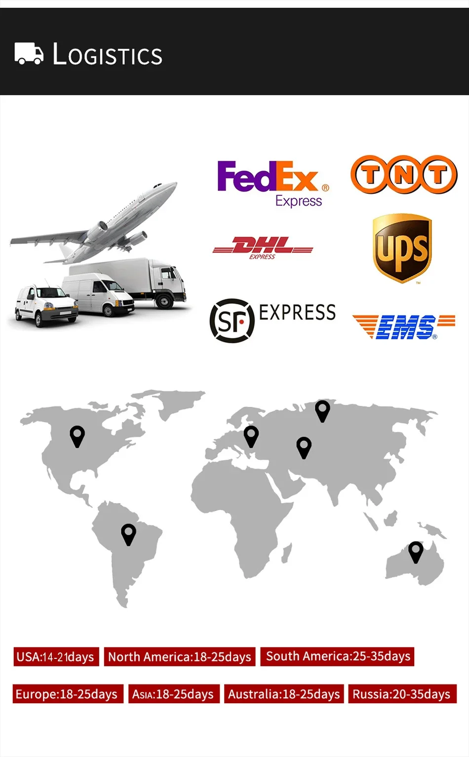 4.Of course ,we also can ship out with epacket, Yunexpress, DHL to other countries.usually it needs add some money ,pls contact us .
