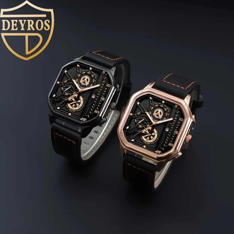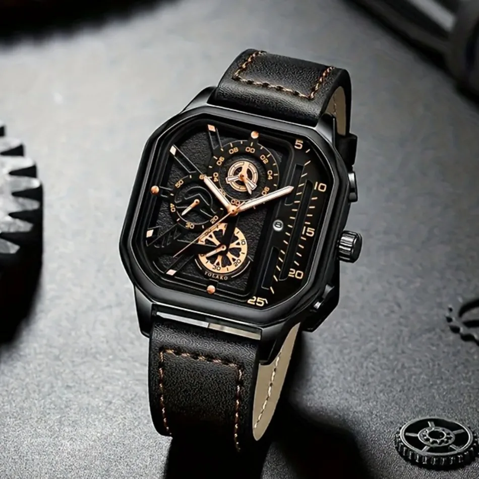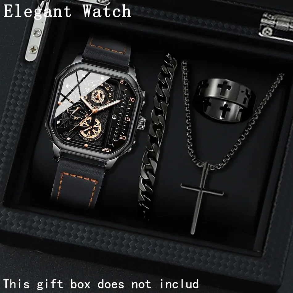 Men Watch 4/8/12pcs/set, Casual Mens Squar Dial Quartz Watches Analog PU Leather