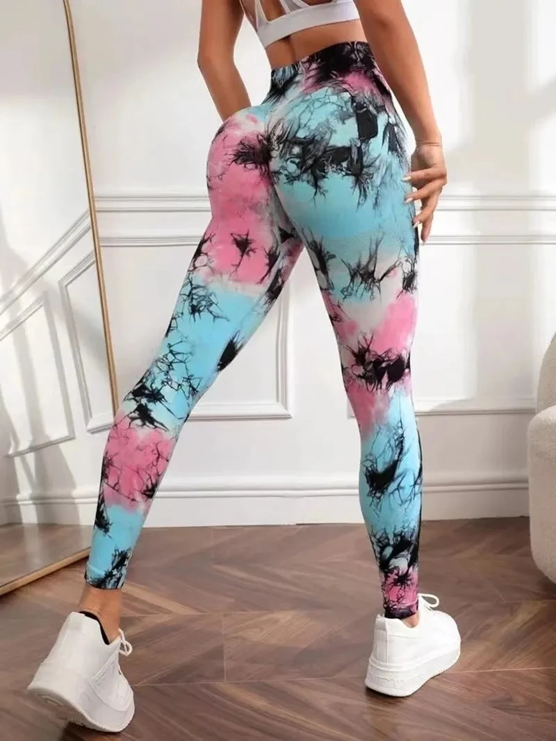 New Tye Die Seamless Yoga Pants 3D Printed Women High Waist Lifting Hip Honey Pe