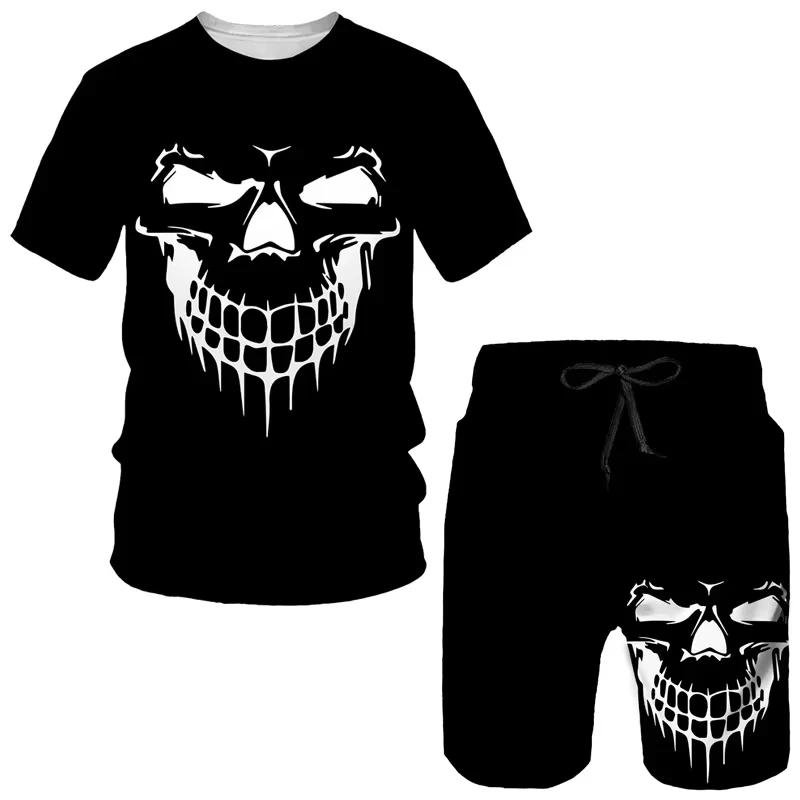 Skull 3D 2-piece men's printed 2025 summer short sleeved sportswear, gothic grap