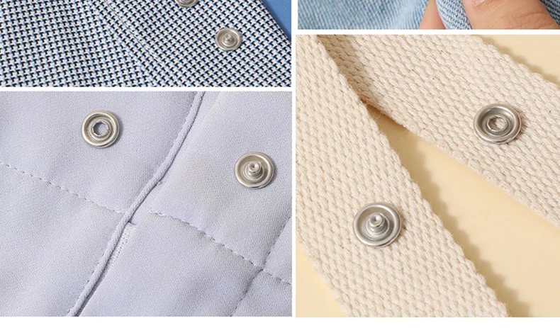 4. Wide range of applications: Snap kits are widely used in sewing garments, baby scarves, children's clothing, toys, paper bags, shoes, hats, suitcases, luggage, quilt covers, curtains, raincoats, DIY crafts, etc.