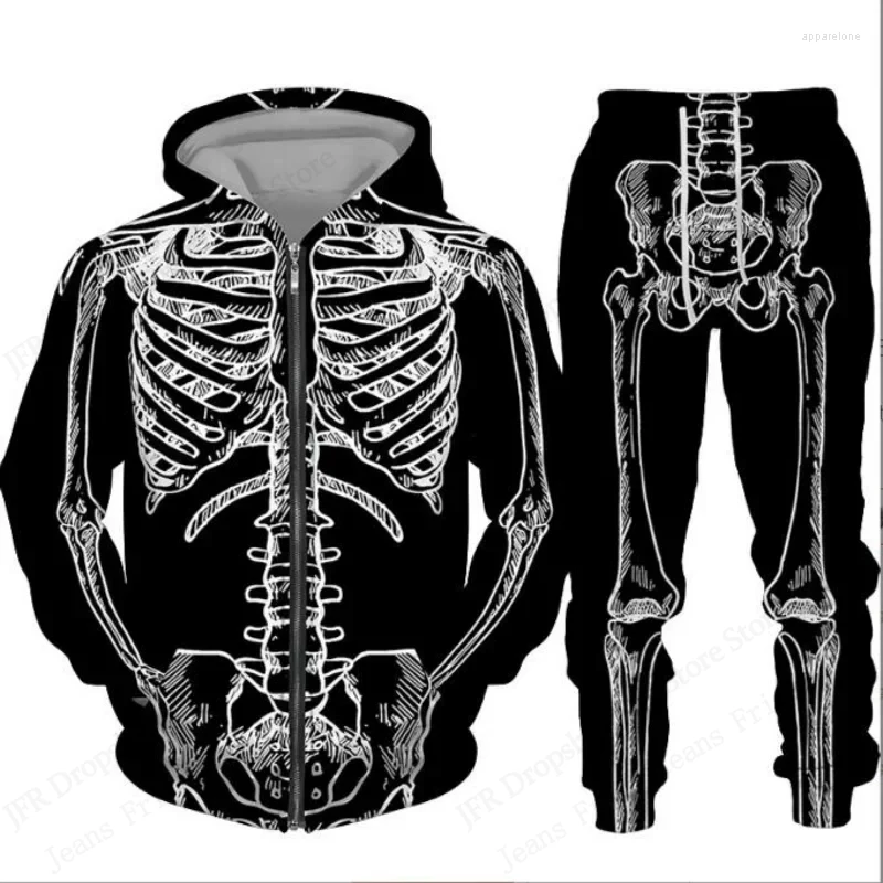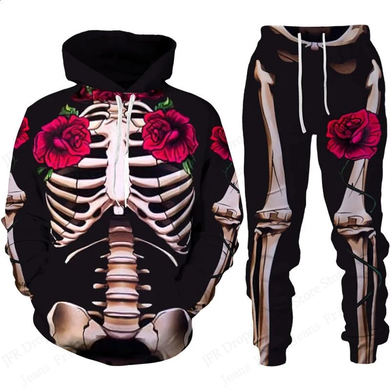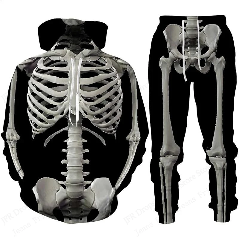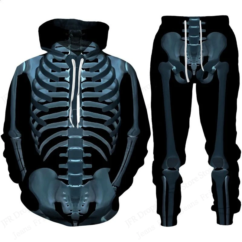 Two Piece Hoodie Pant Sets Halloween Skull Skeleton 3d Print Sets Men Women Fash
