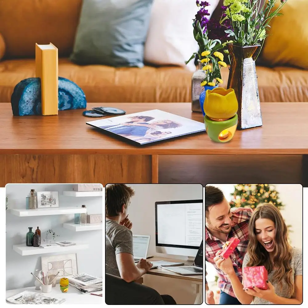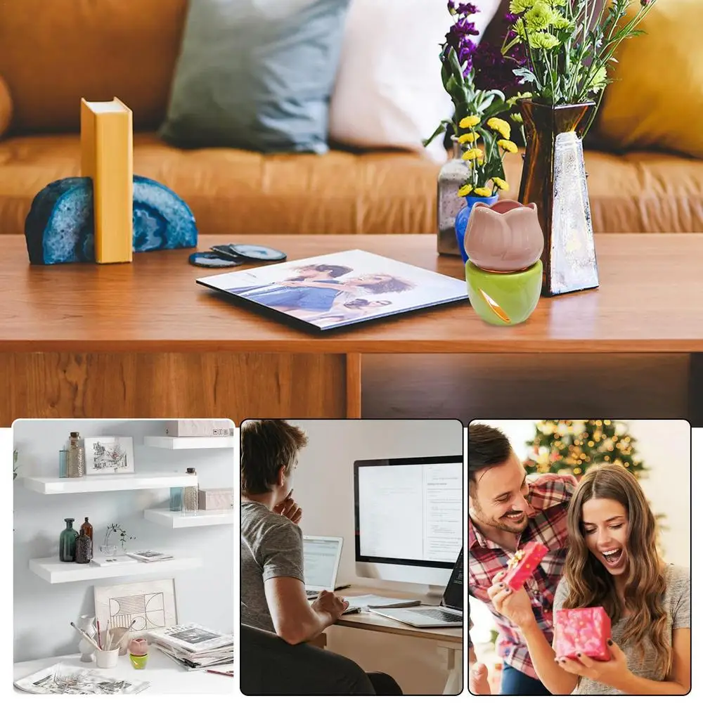 5.Charming Flower Shape: Seamlessly blending a delicate shape with bright colors, this tea light wax melt warmer lifts your space's aesthetic, offering a beautiful flower shape that complements any room.